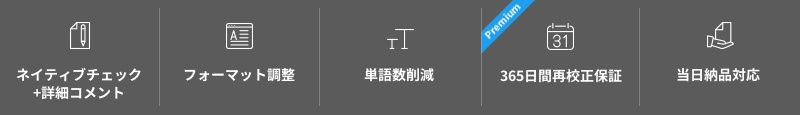 お客様の英語の文書を、長年の専門英文校正経験を有するネイティブ校正者が迅速かつ正確に校正いたします。